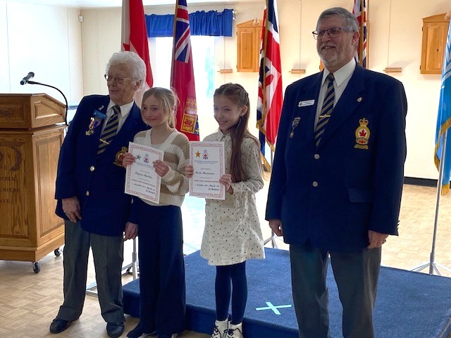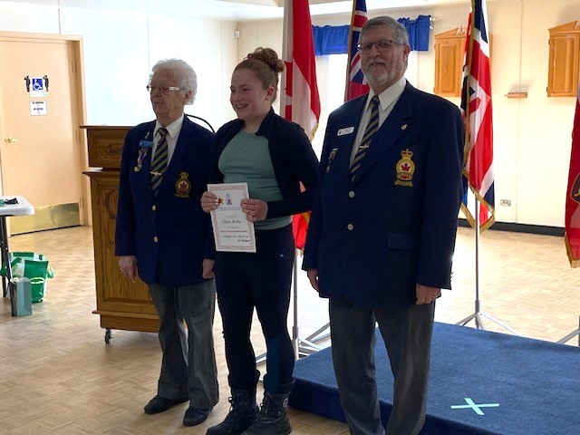 Presenting the certificates to the 1st place Intermediate student were Astrida, 1st Vice President, and Michael, President of Royal Canadian Legion Branch 100 Brighton. Their support and encouragement helped make the Youth Public Speaking Competition a proud moment for all involved.