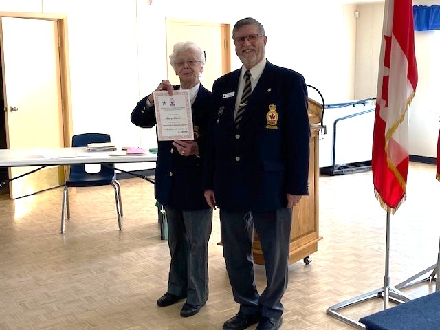 Presenting the certificate to the 2nd place Intermediate student who had to leave early are were Astrida, 1st Vice President, and Michael, President of Royal Canadian Legion Branch 100 Brighton.