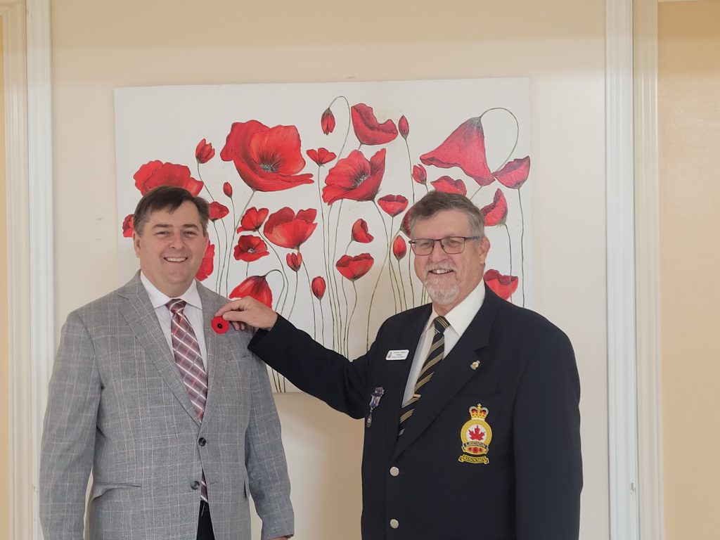 RCL 100 President Michael French presented the first poppy to Brighton Mayor Brian Ostrander to kick off the 2025 Poppy Campaign.