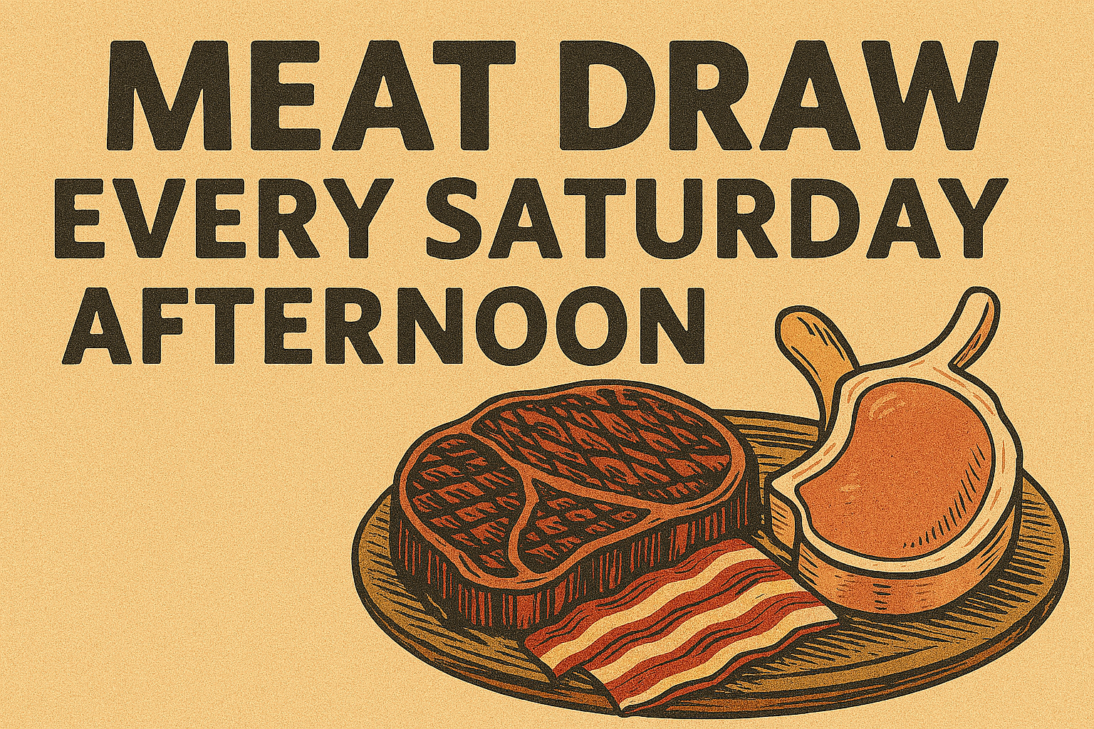 Lorna and Sue invite you to the Saturday meat, held weekly from 4:00-5:00 pm. Buy tickets for a chance to win. Good luck!